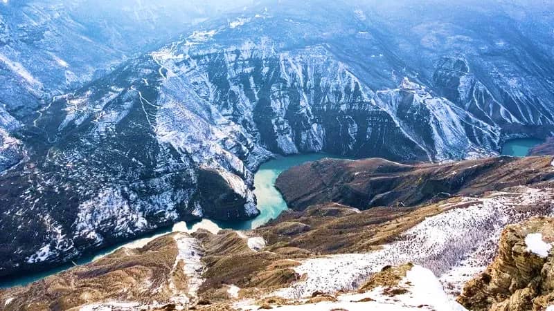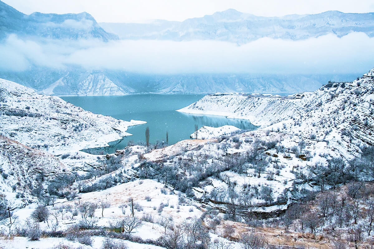Вас ждет путешествие по зимнему Дагестану. Заснеженные горы, замершие озера и водопады
